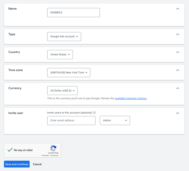 Enter a Name for the new account (use the same name as the one in Topline for easy identification).