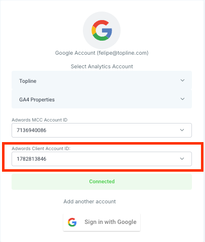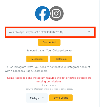 Click on the connect options and follow the instructions so Lead Connector can integrate with Topline , once all permits are granted you will be able to select the account you want to integrate.