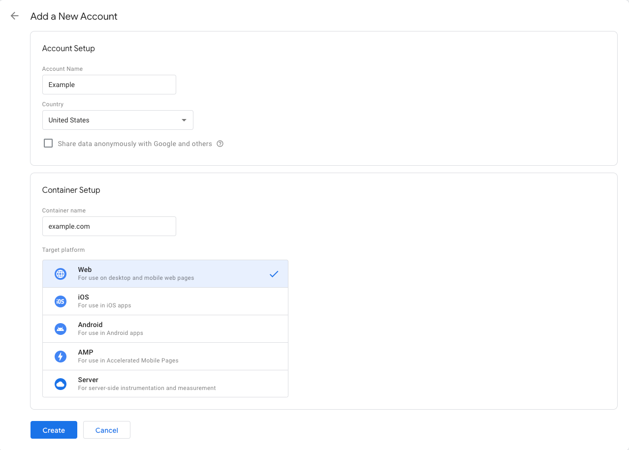 • Under Container Setup, enter your Container Name